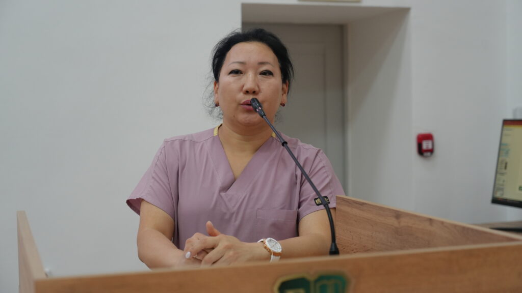 С лекцией выступила Жуспекова А.Ж., специалист по социальной работе. Она подробно рассказала о важности сезонной вакцинации, в том числе о применении препарата «Гриппол», а также о мерах индивидуальной и коллективной профилактики.