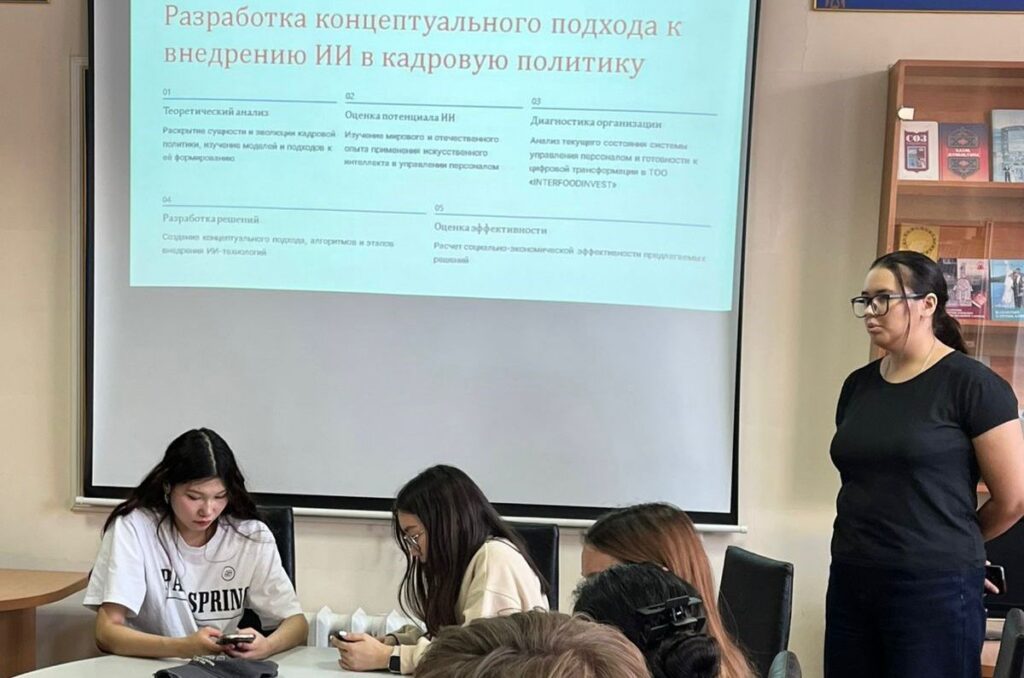 Спикером круглого стола выступил доктор, ассоциированный профессор Айбек Имашев. В своём докладе он остановился на том, как развитие искусственного интеллекта влияет на рынок труда, подчеркнул значимость цифровых компетенций и необходимость адаптации будущих специалистов к новым экономическим условиям. Почётным гостем мероприятия стал Айдын Имашев, главный менеджер службы безопасности АО «Казахтелеком». Он подробно рассмотрел особенности внедрения искусственного интеллекта в телекоммуникационной отрасли, вопросы информационной безопасности и поделился практическим опытом в части современных требований рынка труда.
