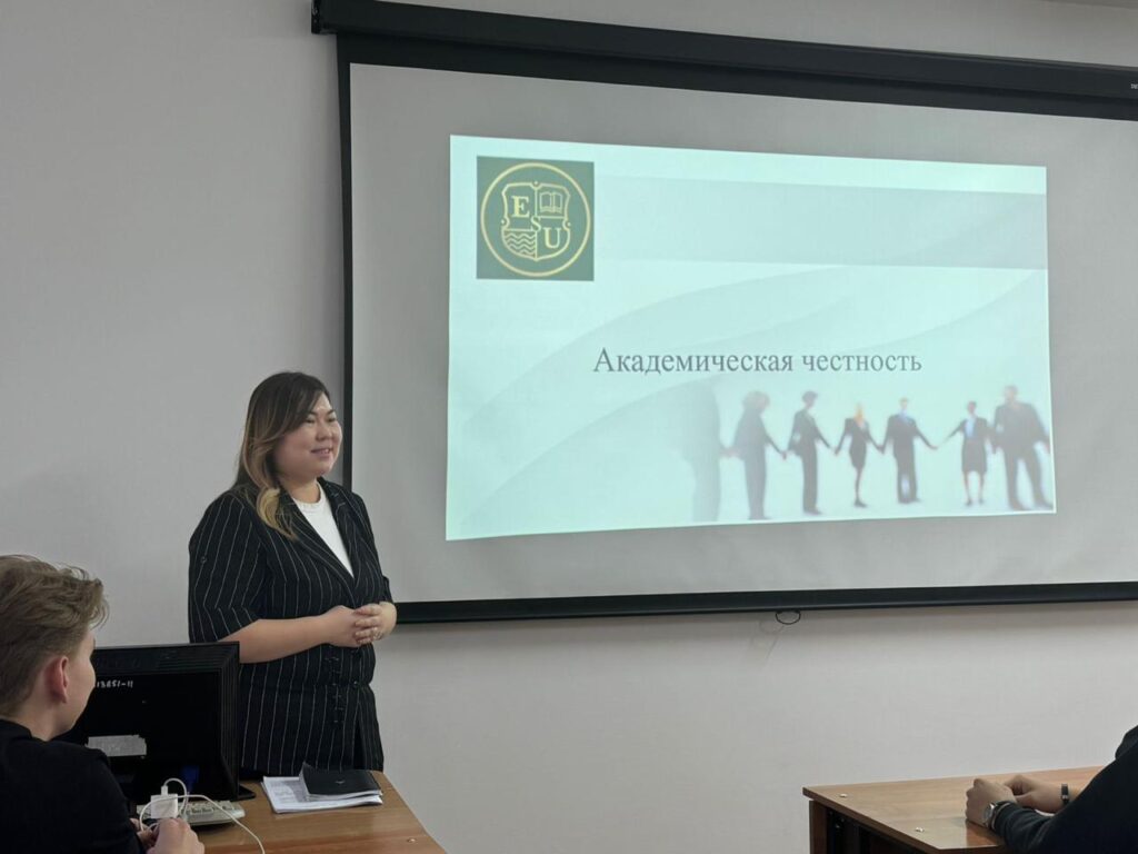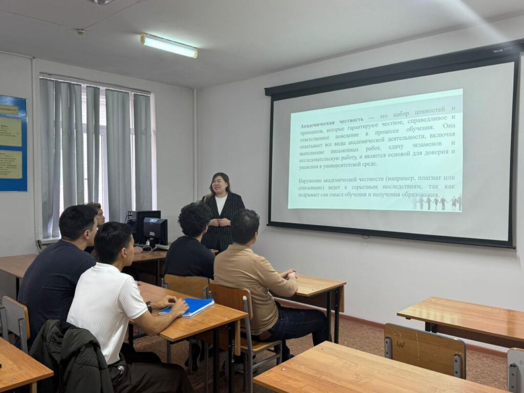 Куратор Замбинова Зауре Болатовна рассказала студентам о значении академической честности в образовательном процессе, о принципах честного выполнения учебных заданий, недопустимости плагиата, списывания и других форм недобросовестного поведения. Особое внимание было уделено формированию у студентов осознанного отношения к учебе, развитию критического мышления и уважения к интеллектуальному труду.