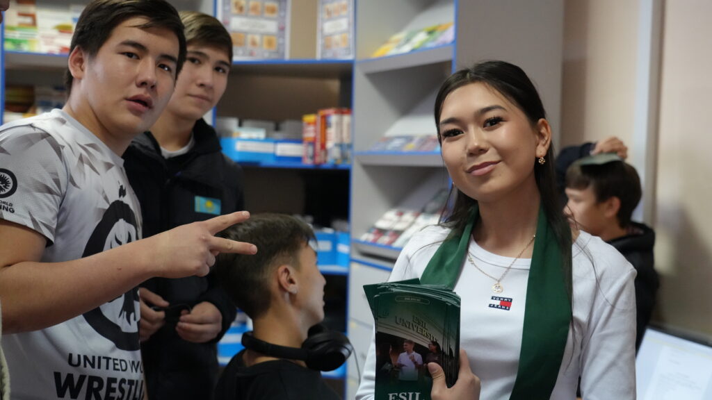 Для гостей была организована ознакомительная экскурсия по университету, которую провели амбассадоры Esil University. Старшеклассники посетили учебные аудитории, библиотеку, актовый зал, Esil Media Hub, ознакомились с инфраструктурой и условиями обучения.