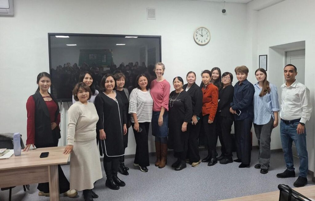 Мероприятие было организовано секцией английского языка кафедры СГД. В ходе общения гостья рассказала студентам о системе образования в США, а также поделилась личным опытом проживания и преподавания английского языка в Испании, России и Казахстане. Было отмечено, что супруг Келли Вильям также преподаёт английский язык в Астане.