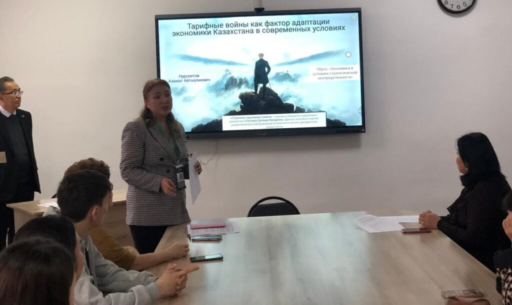 Заведующий кафедрой «Экономика и маркетинг», к.э.н., и.о. доцента Замбинова Г.К., поздравила участников мероприятия, рассказала о планах и ключевых мероприятиях Недели, акцентировав внимание на значении профессиональных компетенций и активного вовлечения студентов в научно-образовательный процесс.