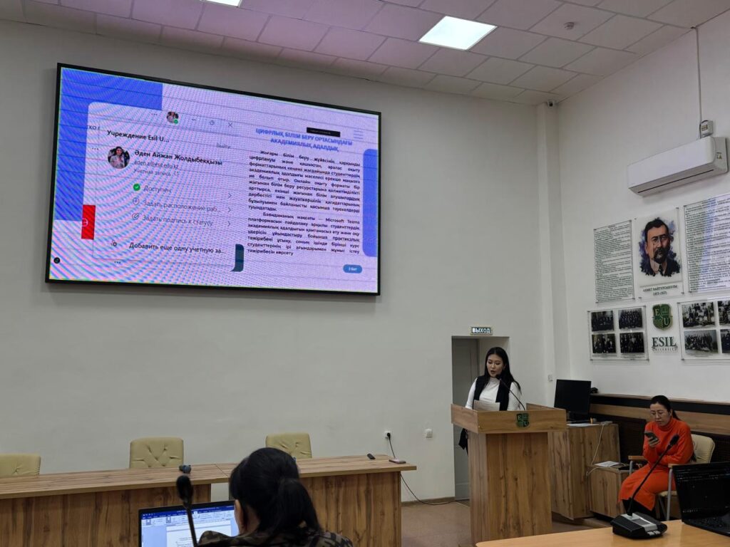 В рамках Международной учебно-методической конференции «Искусственный интеллект, инклюзия и академическая честность: баланс инноваций и образовательных ценностей»,  был представлен доклад на тему «Академическая честность студентов в условиях цифрового оценивания: опыт использования платформы Microsoft Teams». Докладчик: Әден Айжан Жолдыбекқызы, магистр, преподаватель кафедры «Социальные и гуманитарные дисциплины».