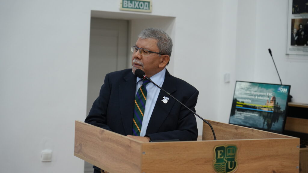 Emeritus Professor Datuk Dr. Mohd Tajudin Bin Md Ninggal, вице-президент Open University (Malaysia), отметил значение международного академического партнёрства и рассказал о комплексном подходе правительства Малайзии к устойчивому развитию, принципам ESG и социальной, экономической и образовательной ответственности.