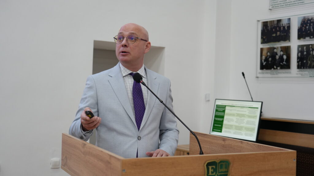 Дмитрий Улыбышев, кандидат экономических наук, доцент и директор Центра социально-экономических исследований Esil University, рассказал участникам конференции о стратегическом планировании и эффективности использования национальных ресурсов в Казахстане.