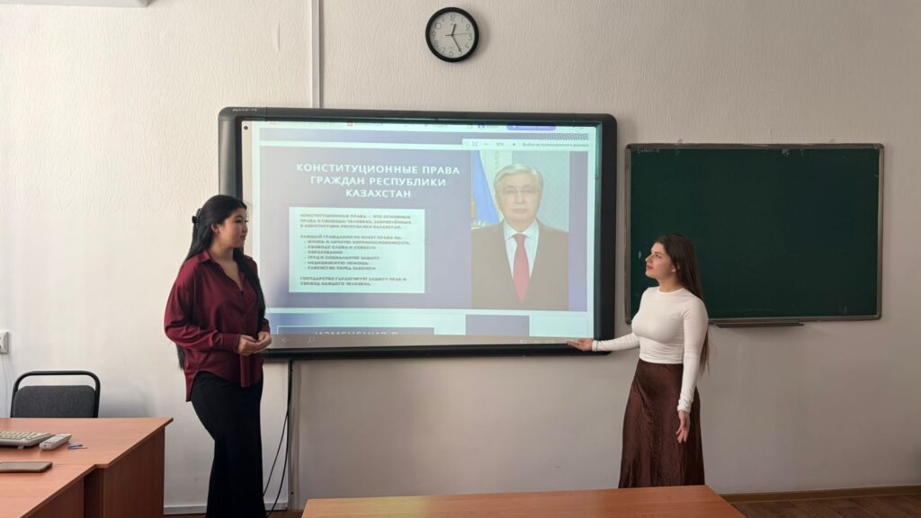 Преподавателем кафедры «Экономика и маркетинг» Наурызбаева А.А. был проведён кураторский час с группами 2 курса Б ДМ 24/1 и Б ДМ 25/23 на тему «Знаешь ли ты свои конституционные права?».