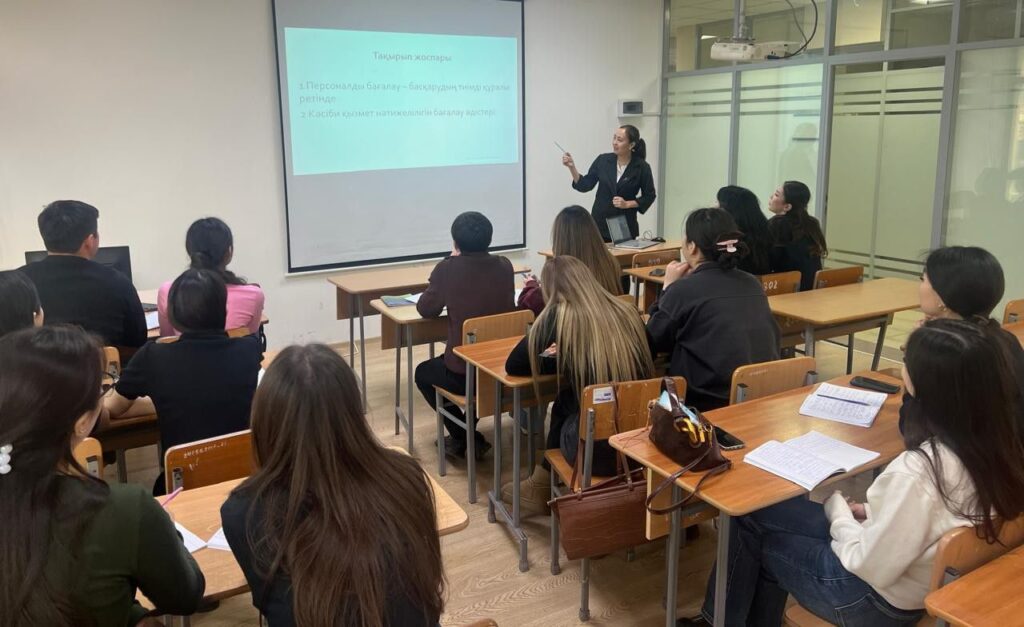 Старший преподаватель кафедры менеджмента Тулегенова Кунсая Тасболатовна провела открытое занятие для студентов 4 курса группы МЖБ по дисциплине «Көшбасшылық және жеке тиімділік» на тему «Методики оценки эффективности профессиональной деятельности». В ходе занятия были рассмотрены современные методы оценки эффективности профессиональной деятельности. Студенты ознакомились с ключевыми показателями, инструментами самооценки и способами анализа результативности личной и командной работы. …