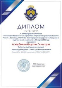 Главная О нас Административные подразделения Кафедра «Финансы» Сертификаты магистрантов и студентов Doc1