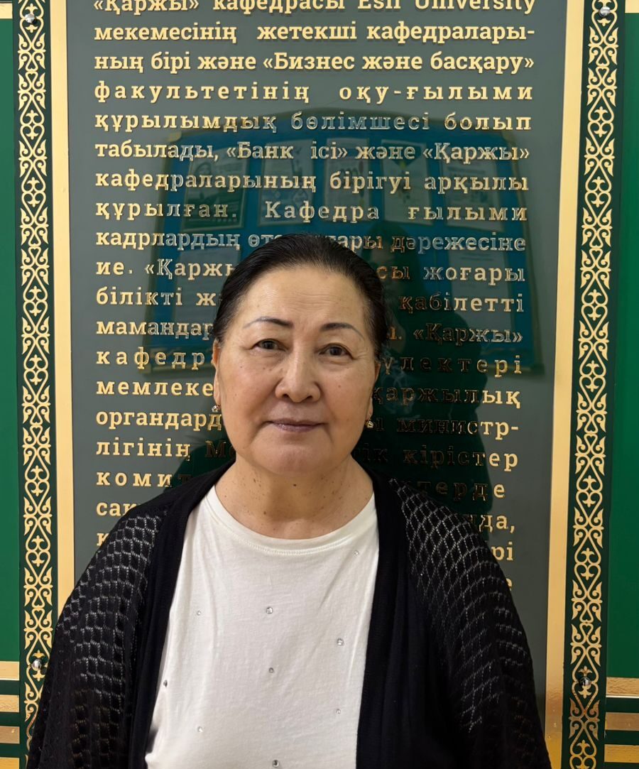 С сен 2021 по авг 2023 профессор кафедры «»Бизнес администрирование университета Туран Астана 09.2016-авг.2021 г. профессор кафедры «Финансы»; профессор кафедры «Финансы и таможенное дело» АО «Финансовая академия» (Астана) С 2013 по 2016гг. профессор, зав.кафедрой «Финансы и учет» КазАТиСО; 2010-2013 гг. профессор, зав.кафедрой «Экономика промыщленности»; зав каф. «Финансы» КазНТУ имени К.И.Сатпаева; — С 2000 по 2010 г. Доцент КазГУ, зав каф Бух.учета и аудита КазНУ имени аль-Фараби; 1997 по 2000 гг. Доцент Каз.гос.академии управления (г.Алматы); -С 1992 по 1994 гг. доцент каф. КарГУ имени Е.А.Букетова(г.Караганда);; -С 1995 по 1997 гг. доцент кафедры Доцент КазГАСА(г.Алматы) и фин.директор АО «Бизнес школа» — с 1992 по 1994 гг. доцент каф. КарГУ имени Е.А.Букетова(г.Караганда);; — с 1979 по 1988 гг. преподаватель каф. Бухгалтерского учета ККИЦ