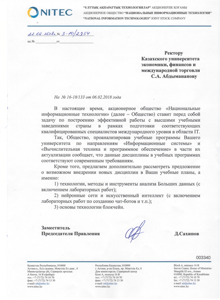 Главная О нас Административные подразделения Факультет прикладных наук Кафедра «Информационные системы и технологии» Партнеры University of Economics and Human Sciences in Warsaw АО «Национальные информационные технологии» TОО "LINCOMPANY"